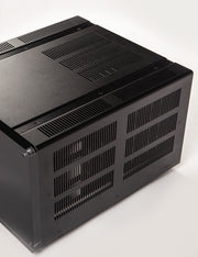 The chassis design is enhanced by two black brushed aluminum rods over the top, which not only gives a much more rigid chassis, but also adds a beautiful decorative element. All housed in a matte luxurious finish that imparts the timeless Electrocompaniet look.